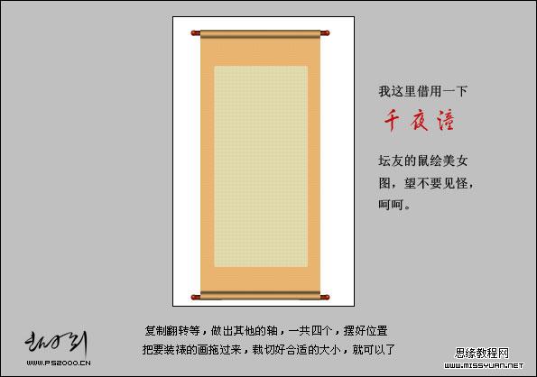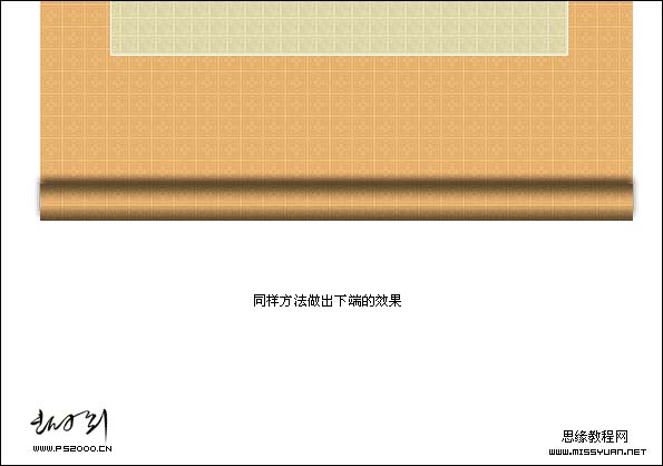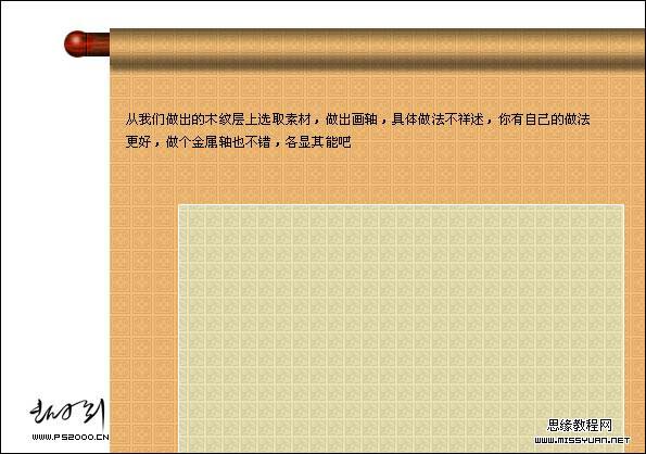 10、從我們做出的木紋上選取素材,做成畫軸部分,需要適當調整光感。 |