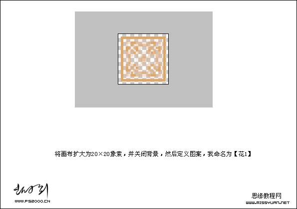 2、將畫布擴大為20 * 20像素(圖像 > 畫布大小),并關閉背景圖層,然后執行:編輯 > 定義圖案,命名為“花1”。 |