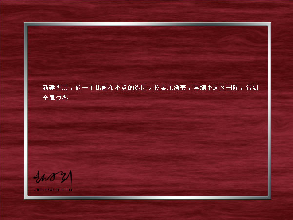 4、新建一個圖層,做一個比畫布稍小的選區,拉上金屬漸變色,然后再縮小選區刪除中間部分,效果如下圖。 |