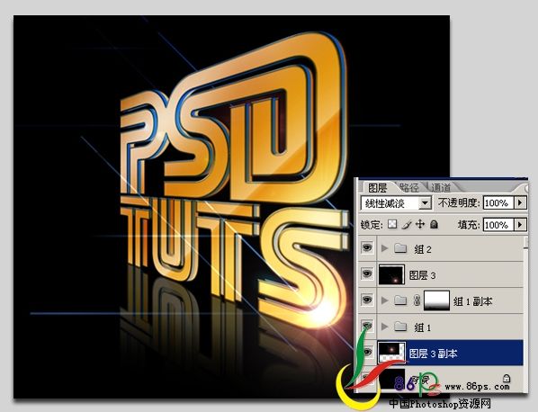 本教程介紹透視字效果的制作方法。作者采用的使用多層圖層錯位的方式制作立體效果。制作的方法不是很難,不過需要調整好文字表面及立體面的質感色澤。