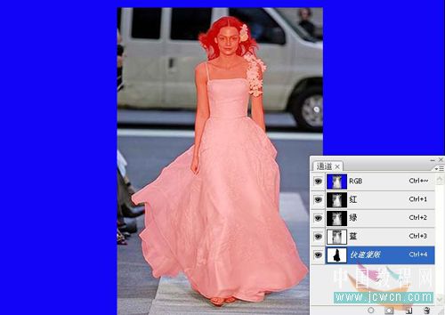 3、按q鍵進入快速蒙版,此時系統就會在“通道面版”中,自動生成了一個快速蒙版“ctrl+4”。如圖3所示: