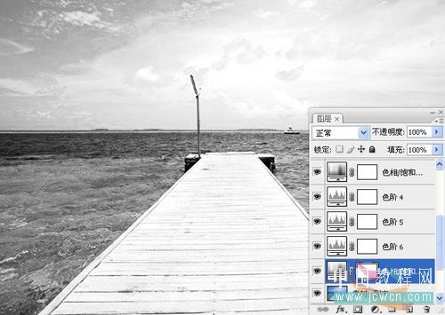 5、按ctrl+u鍵打開“色相/飽和度”,對話框,將圖像的飽和度調整到-100,如圖11。