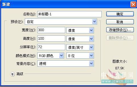 第1步:按ctrl + n創建一個新的圖層,長300,寬100 像素,透明背景