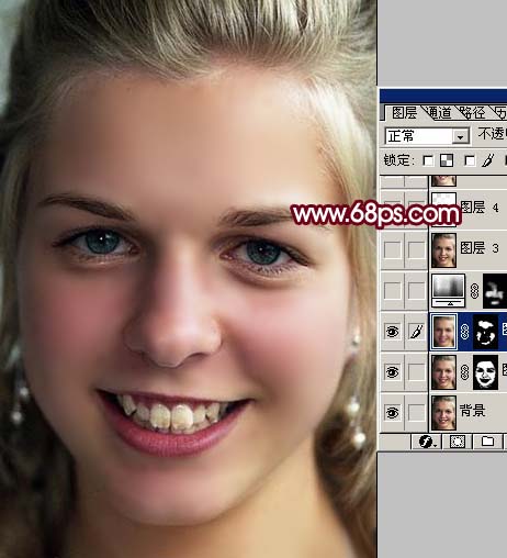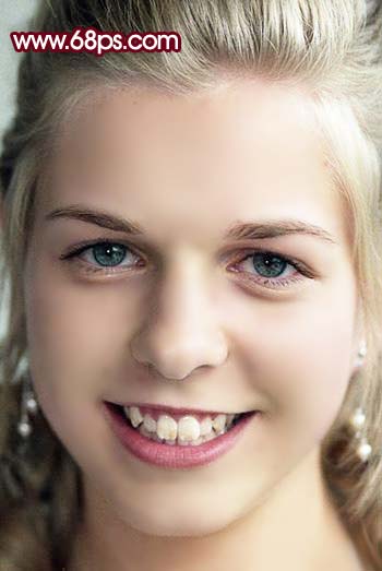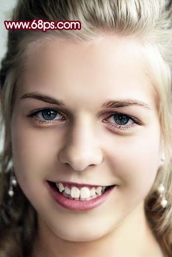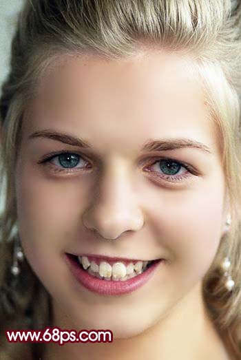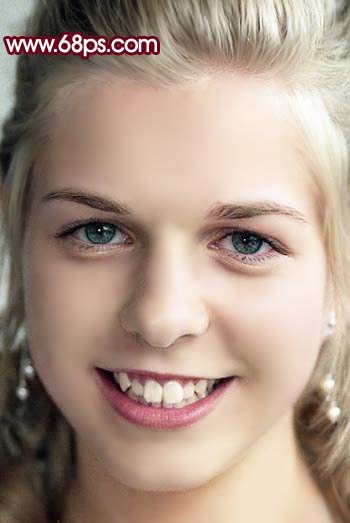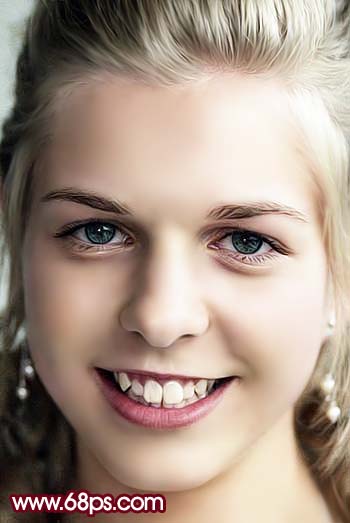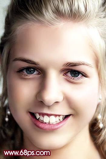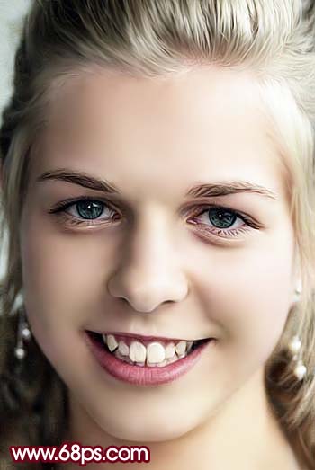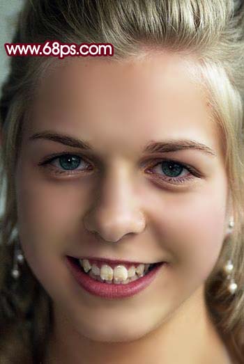 6、新建一個圖層,蓋印圖層,選擇涂抹工具,把人物頭發(fā)及牙齒部分的雜色涂掉,效果如圖7。 |