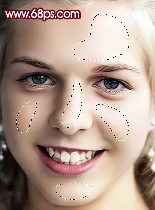 8、新建一個圖層蓋印圖層,選擇模糊工具把臉上沒有去掉的雜色模糊處理,然后再適當(dāng)銳化一下,大致效果如圖9。 |