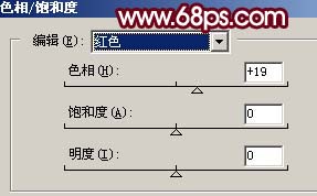 3、創(chuàng)建色相/飽和度調(diào)整圖層,對紅色進(jìn)行調(diào)整,參數(shù)設(shè)置如圖3,確定后把蒙版填充黑色,然后用白色畫筆涂抹臉部有紅色的地方,大致效果如圖4。 |