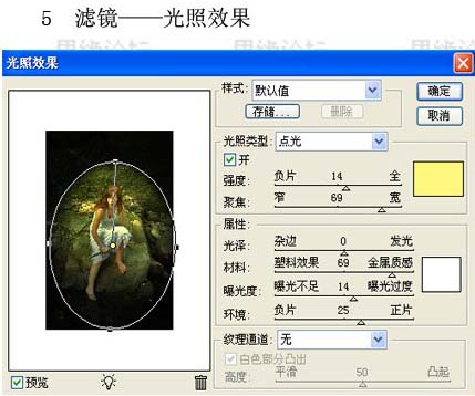 5、執行:濾鏡 > 渲染 > 光照效果,參數設置如下圖。 |