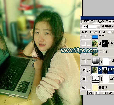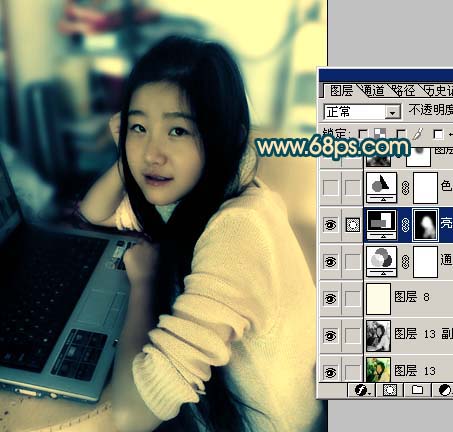 10、新建一個圖層,填充顏色:#fdfbe5,然后把圖層混合模式改為“正片疊底”,效果如圖13。 |