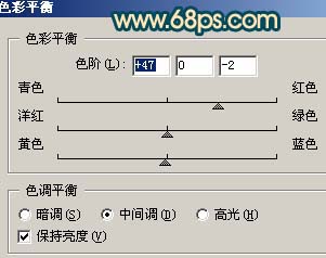 13、創建色彩平衡調整圖層,參數設置如圖20,效果如圖21。 |