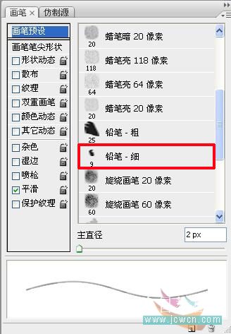 如果找不到“柔角45像素”,就選擇9“鉛筆細”,并將其主直徑設置為2px。 |