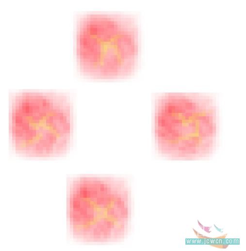 2、在工具屬性欄中設置畫筆的不透明度和流量都為50%,前景色設置并填充為(#fc0516),然后設置不同大小的畫筆,單擊繪制不同大小的花瓣,在花瓣顏色較深的地方可多單擊幾次。如圖9。 |
