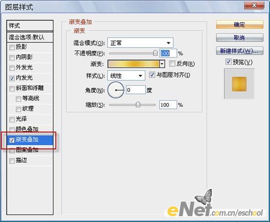 接著選擇【漸變疊加】,參數設置如下圖所示。 |