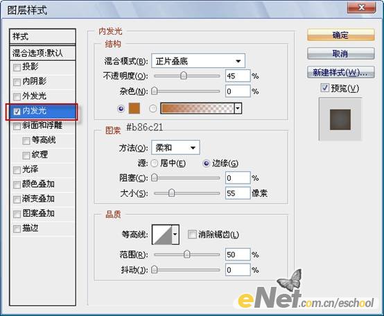 4、下面要為圖層【蛋】添加一些圖層樣式。雙擊圖層【蛋】的縮略圖,調出圖層樣式對話框,選擇【內發光】,具體參數設置如下圖所示。 |