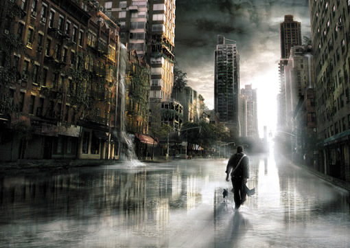洪水-給城市里加水,這是一個復雜的過程,需要照顧到物體的倒影和反光。最后的效果是混合了一些河流、池塘等圖片。