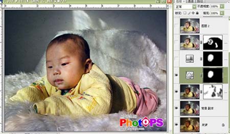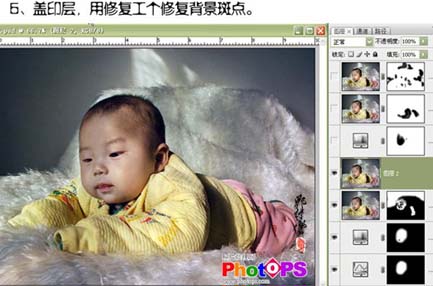 6、蓋印圖層,用修復(fù)工具修復(fù)背景斑點(diǎn)。 |