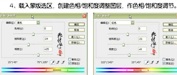 4、載入蒙版選區(qū),創(chuàng)建色相/飽和度調(diào)整圖層,做色相/飽和度調(diào)節(jié)。 |