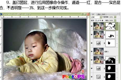 9、蓋印圖層,進(jìn)行應(yīng)用圖像命令操作,通道:紅,混合:實(shí)色混合,不透明度:3%,到這一步操作完成。 |