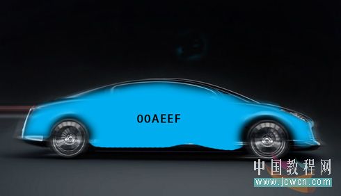 八、新建一層,得到圖層2,設置前景色為:#00aeef,用畫筆工具在車身處涂抹,如圖。 |