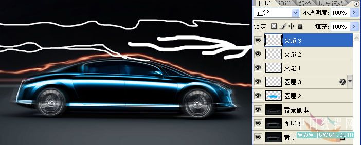 本教程利用靜態的汽車制作出動感效果。制作的時候用燃燒的火焰突出汽車的速度,創意及細節變現都非常不錯。很多抽象藝術效果。