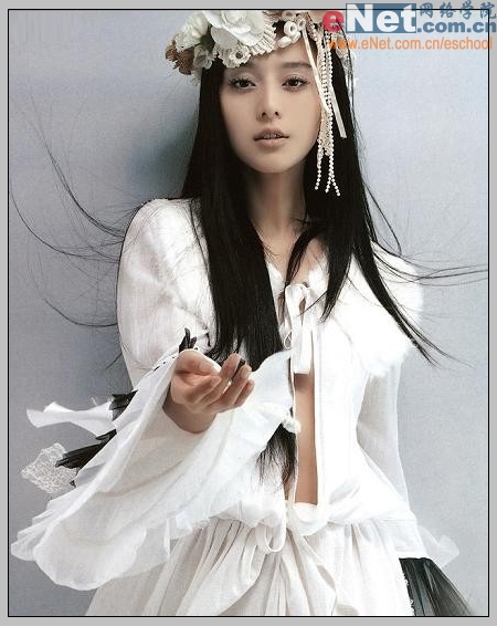 5、打開一張美女圖片,這個造型很像個清純的小仙女,她抬起的纖纖玉手的樣子很有夢幻的感覺,下面就讓我們賦予她魔法吧。