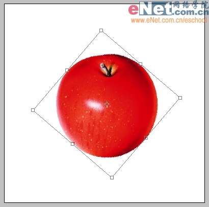 3、勾選蘋果之后,ctrl+j復制一層,ctrl+t調整角度到如下位置,使它和西紅柿一樣把兒朝上。