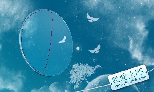 六、移動圖層2的效果,如下圖所示, 再次新建圖層3,制作鏡片厚度邊緣的高光部分。