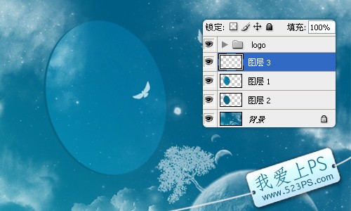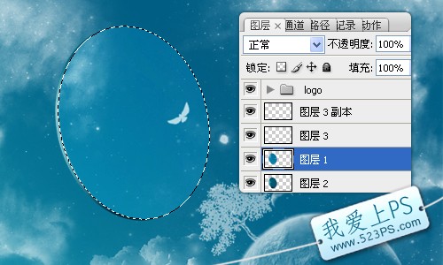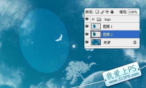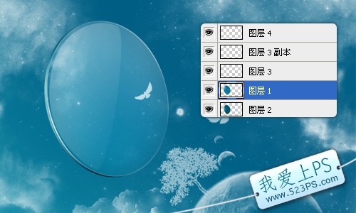 五、調出圖層1的選區后,再新建圖層2,填充深藍色,用于制作鏡片的厚度,并把圖層2移至圖層1的下方。