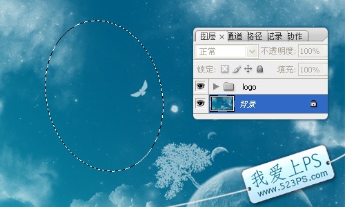 一、選擇背景層,創建圓形選區,編輯菜單中選擇變換選區。