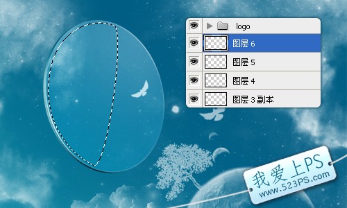 十六、將路徑轉變為選區(按ctrl鍵點擊工作路徑即可轉變為選區),新建圖層6。
