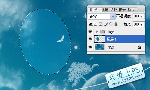 十一、按ctrl鍵點擊圖層1,調出層1的色彩選區。
