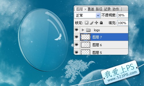 二十一、新建圖層7,在路徑內部填充白色,并改變其透明度。