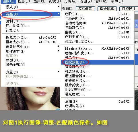 在彈出的設置對話框中,把圖2的皮膚圖層作為源,作用于圖1的圖層1,也就是圖1的皮膚圖層(也就是用圖2的皮膚顏色替換圖1的皮膚顏色)。 |