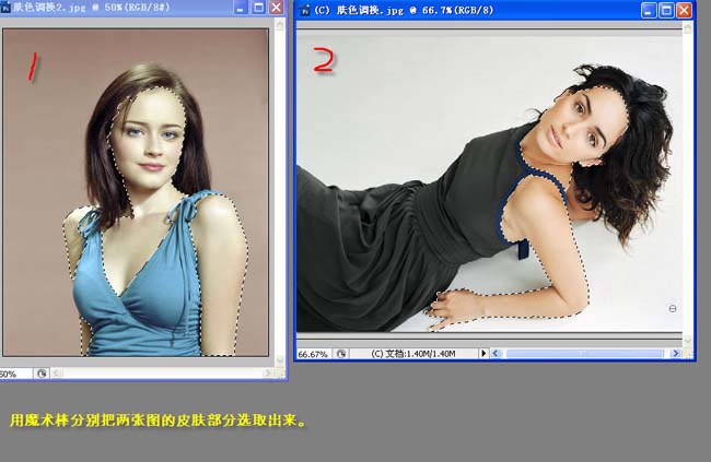 1、打開原圖及下面的素材圖,用魔術棒分別把兩張圖的皮膚部分選取出來。 |