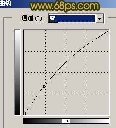 1、打開原圖素材,創建曲線調整圖層,對藍色通道進行調整,參數設置如圖1,效果如圖2。 |