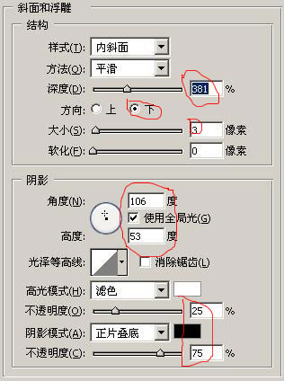 3.對“圓”這層加載圖形樣式。實現按鈕的效果全靠這一步。圖層樣式里有取之不盡的寶藏,大家多發掘吧!這里我用了4種 圖層樣式效果。