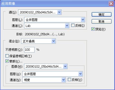 1、打開,復制一層,圖像—應用圖像,如圖: