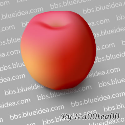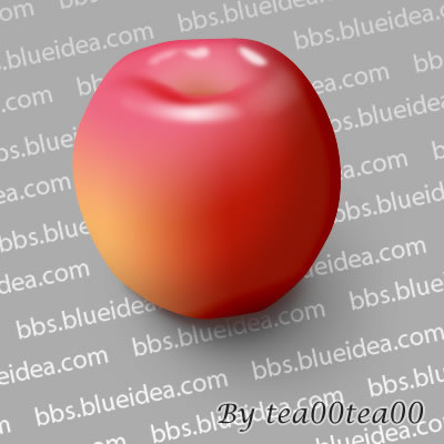 (注:呃,教程里漏了一步,蘋果右下角最好再加一點白色的漸變,是反光。完成圖是畫了反光的,中間的圖都沒畫。記得畫一個透明一點的白色漸變在右下角就行啦。)