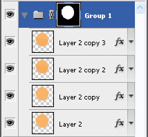 把這些圖層放到一個組里,給這個組加一個蘋果形狀的蒙版——以后在這個組里新建圖層,就不會畫到外面去了。