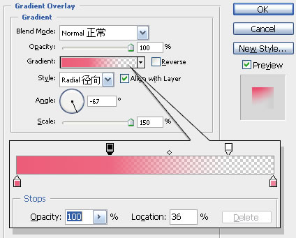 圖層樣式的對話框先不要關,放在旁邊,直接在圖上用鼠標拖動漸變位置。