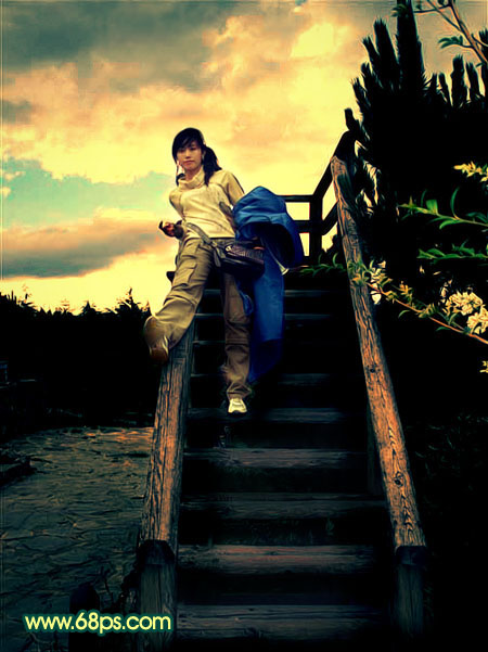原圖素材的光線有點(diǎn)暗,不過(guò)背景等都非常清晰。非常適合用來(lái)做暖色調(diào)整。調(diào)色的時(shí)候先大致調(diào)出整體的主題色調(diào),然后再修飾局部細(xì)節(jié)及色調(diào)。