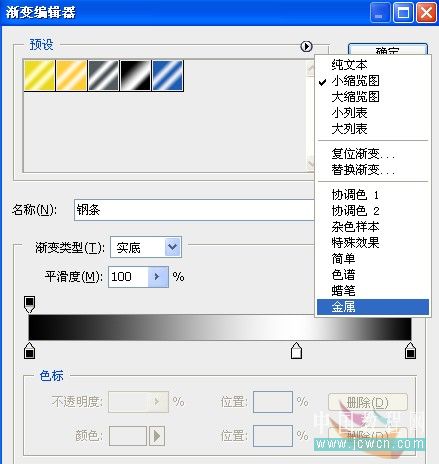 12、選擇漸變填充工具,載入或替換金屬,選擇鋼條漸變。