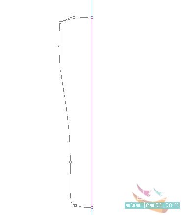 1、新建一個800*1100,300像素的新文件,居中設(shè)定垂直參考線,選擇鋼筆工具在路徑模式下畫出半個玻璃杯的路徑,如圖。