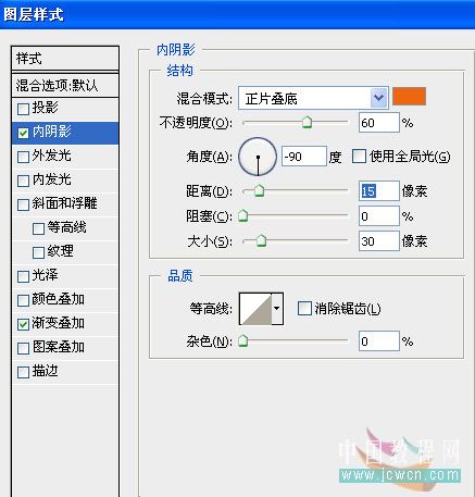 23、繼續(xù)為橙汁層添加圖層樣式,選擇內(nèi)陰影,顏色設(shè)定:#ee6611,注意要取消全局光勾選。