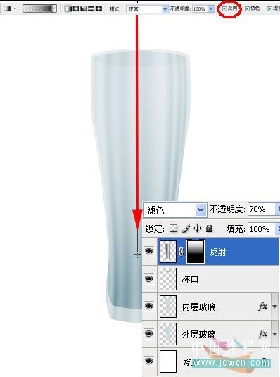 40、現(xiàn)在基本完成了,我們稍花一點時間來調(diào)整一下杯子的反射層,我感覺杯子的高光有一些不足,所以復(fù)制反射層,調(diào)整不透明度30%。