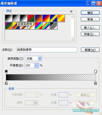 31、杯子和澄汁部分基本完成了,現(xiàn)在請先保存你的文件吧15.1、現(xiàn)在我們來制作泡沫筆刷,新建一個300*300,300dpi的新文件,新建一層,命名:“泡沫”,填充白色,并為泡沫層添加圖層樣式,選擇漸變疊加,設(shè)置如圖。