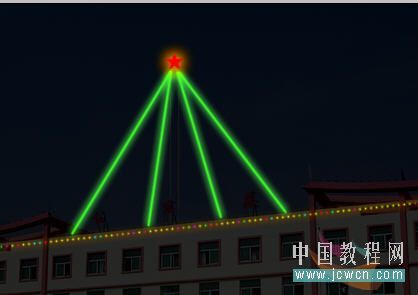 10、新建一層圖層2,設置前景色為綠色(60,255,40)用3像素畫筆沿拉線畫線如圖10(看不清楚可先隱藏背 景副本層)。