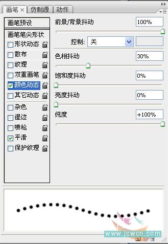 7、設置硬邊畫筆,大小3,間距185如圖5,進行顏色動態設置如圖6。