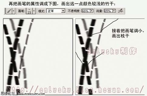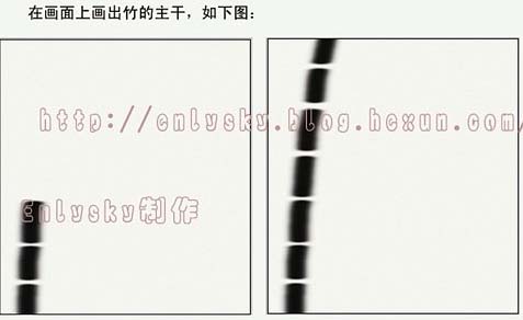 3、再把畫筆的屬性調成下愛徒,畫出遠一點顏色較淺的竹竿。