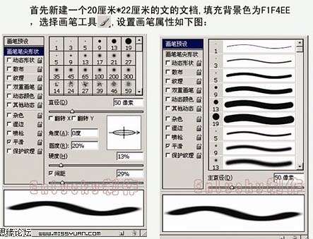 1、首先新建一個20 * 20厘米的文檔,背景填充顏色:#f1f4ee,選擇畫筆工具,參數設置如下圖。