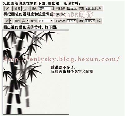 本教程是用photoshop畫筆繪制水墨竹。最終效果